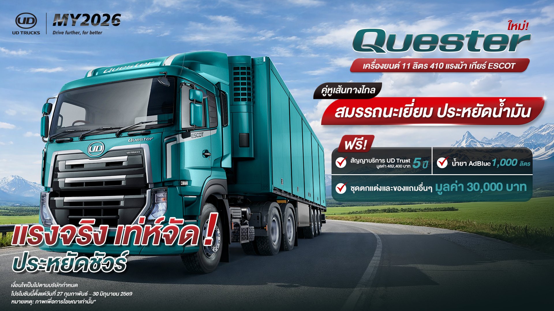 มอบโปรโมชั่นพิเศษสุด สำหรับรถหัวลาก UD Quester เกียร์กึ่งอัตโนมัติ เอสคอท 390HP