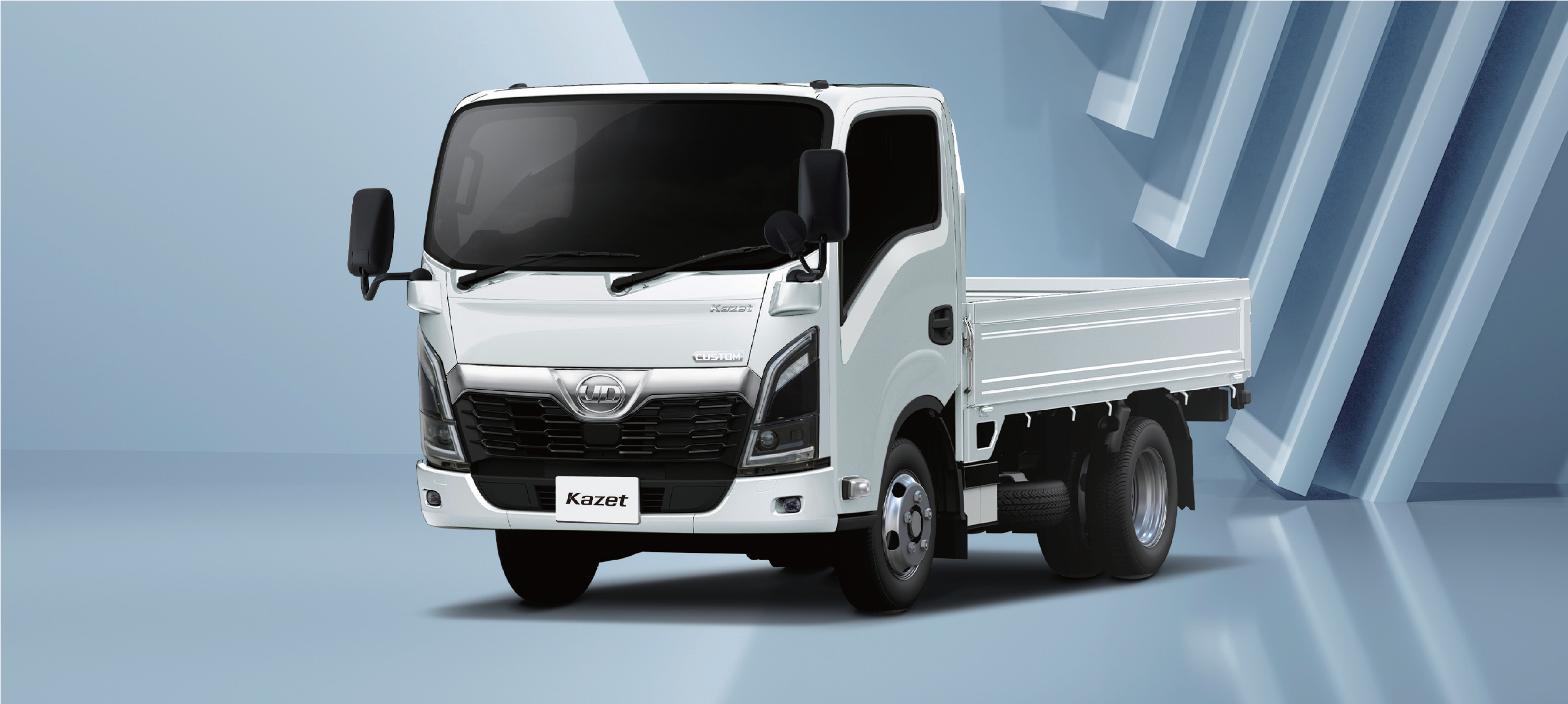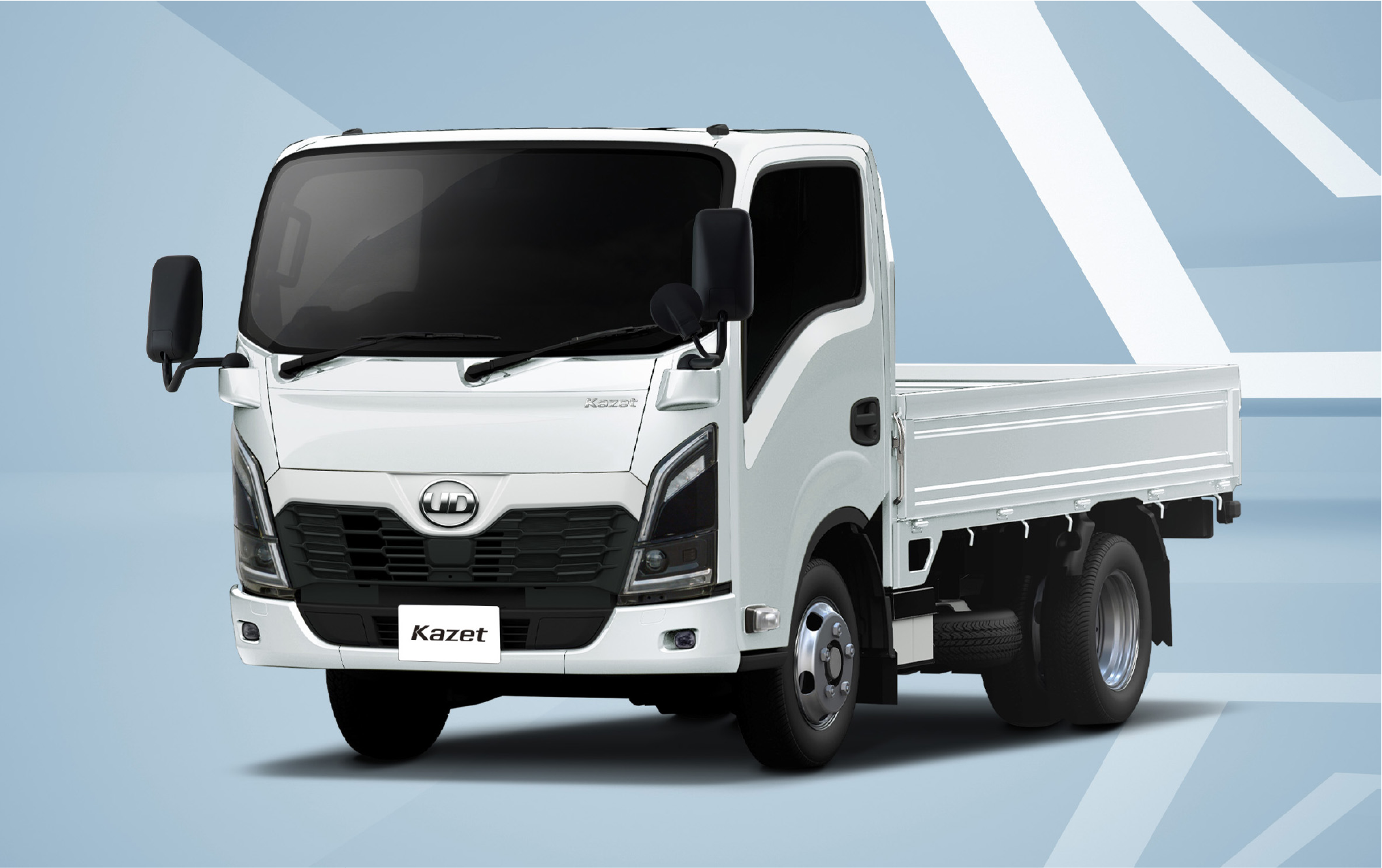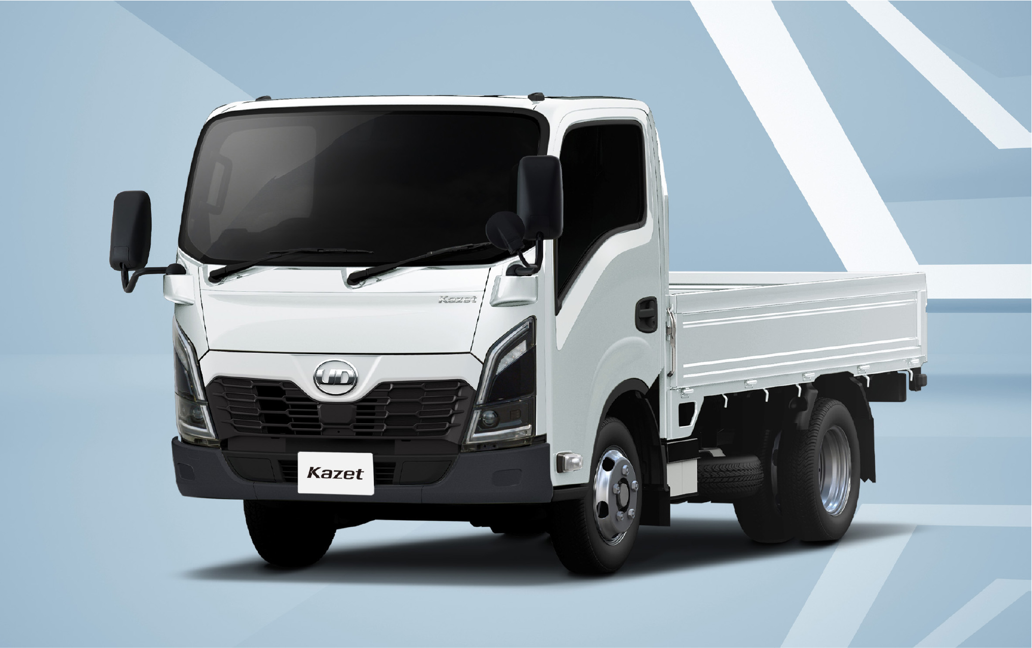 最も目立つ上段ホワイトパネル部は、お客様の企業ロゴ等を貼ることを考慮したユーザーユーティリティゾーン。中段は、独創的なアッパーグリルとブランドロゴを配置したブランドゾーン。黒色塗装されたフロントグリル下部は、エンジン吸気口やフロントレーダー等、車両の機能に関する装置・機構を集約した冷却開口&機能ゾーン。目的別にゾーン分けしたデザインとしています。